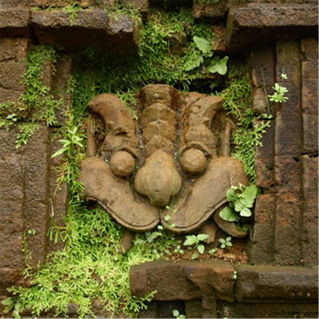 现存的20座寺塔散乱的分布于美山山谷中,寺庙和古塔多用红砖建筑,砖块的大小规格统一,硬度均匀,砖与砖之间没有灰浆仍紧密重叠,充分显示了古代占婆艺人精妙的建塔技术和石砌雕刻工艺。此外,塔寺内外还有大量栩栩如生的人兽石雕。其建筑和雕刻均为印度风格。